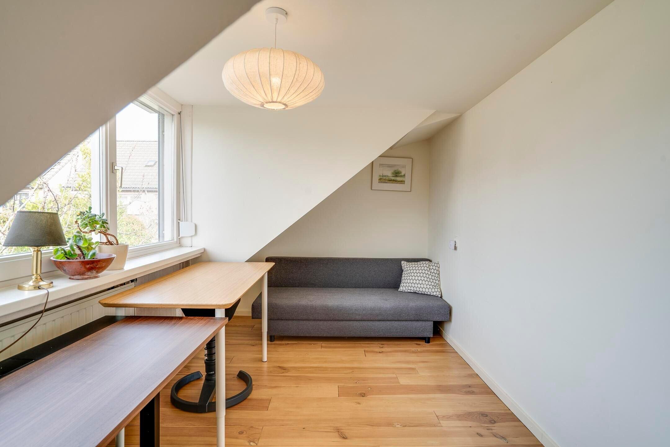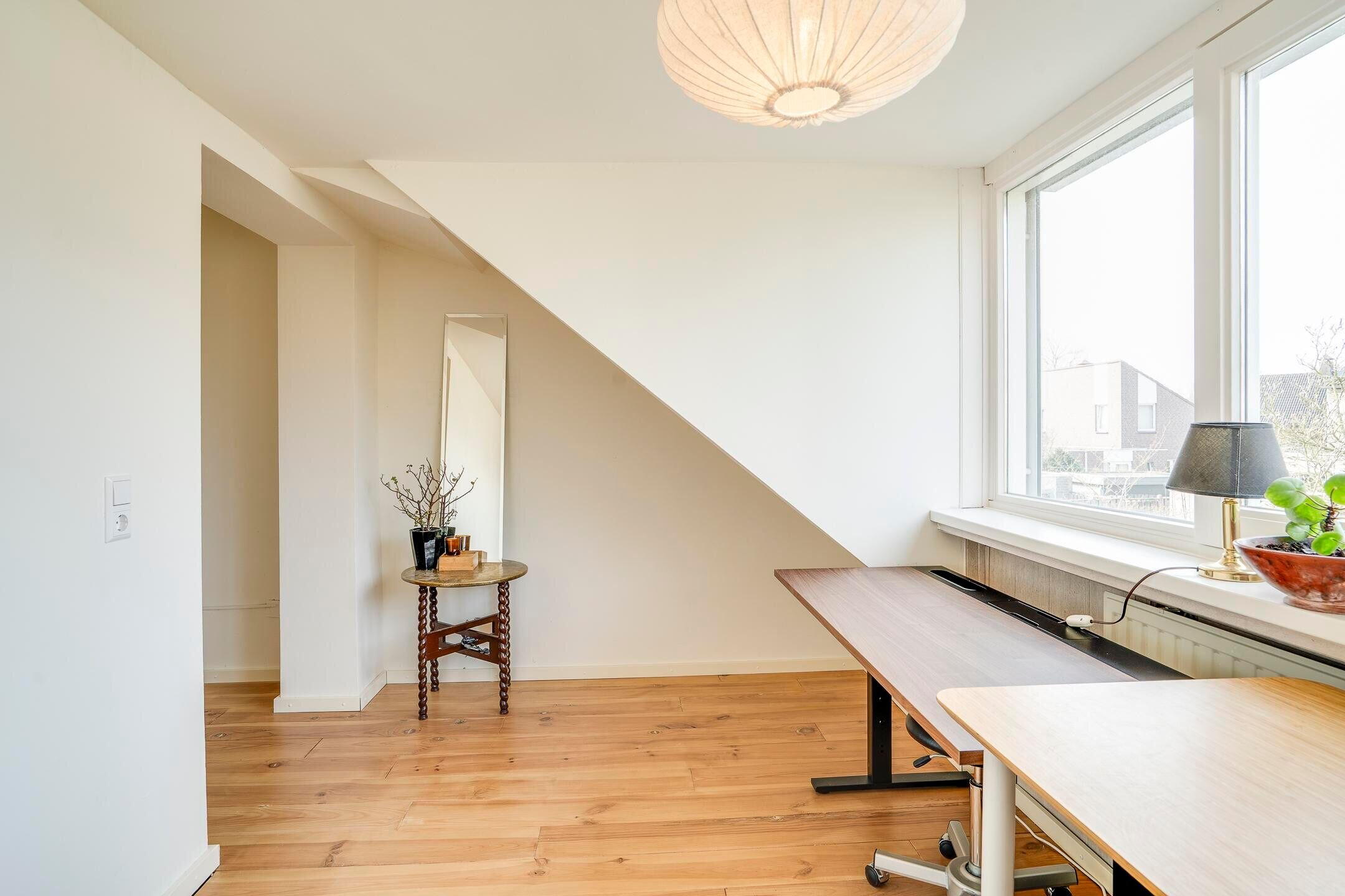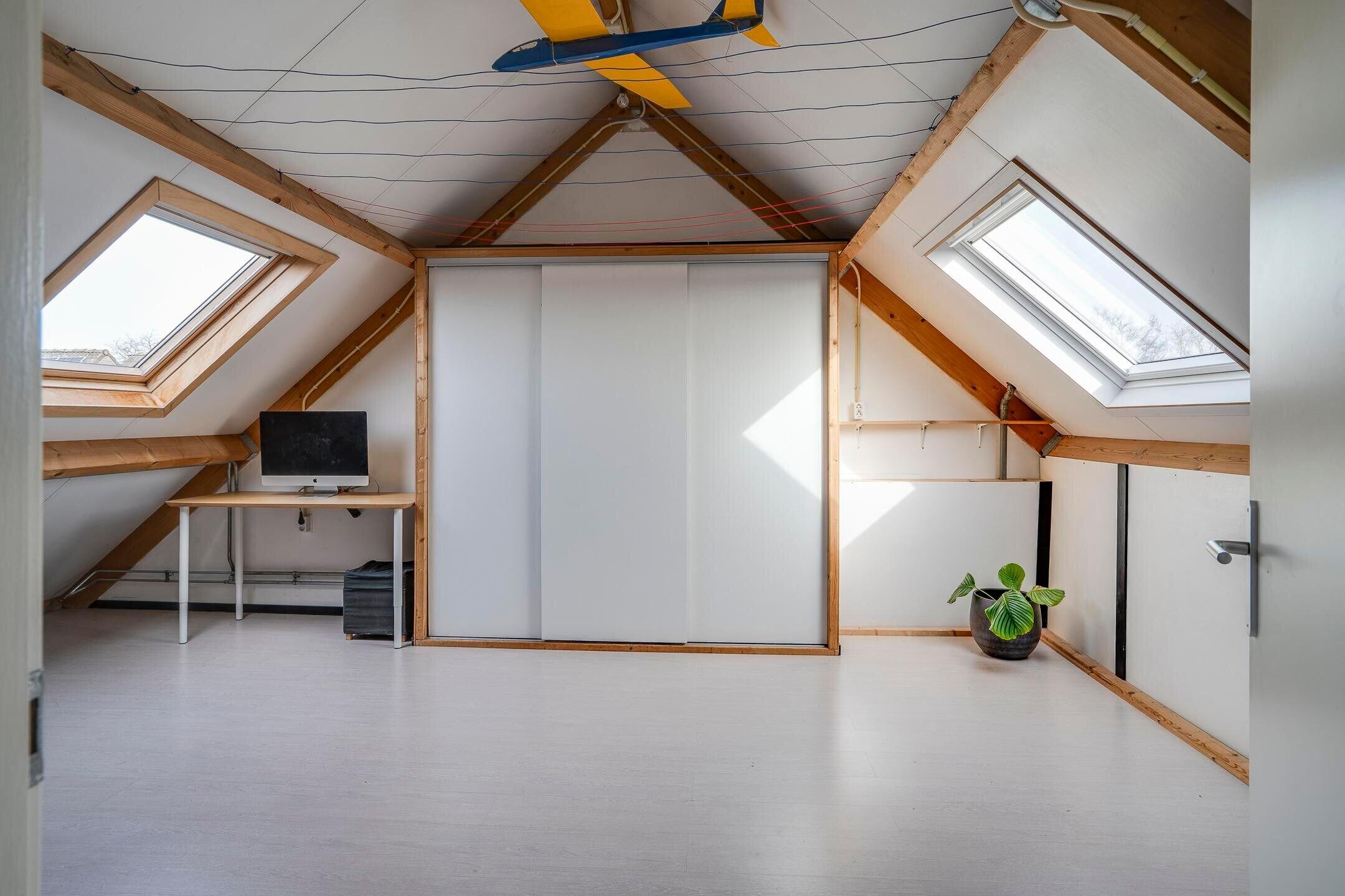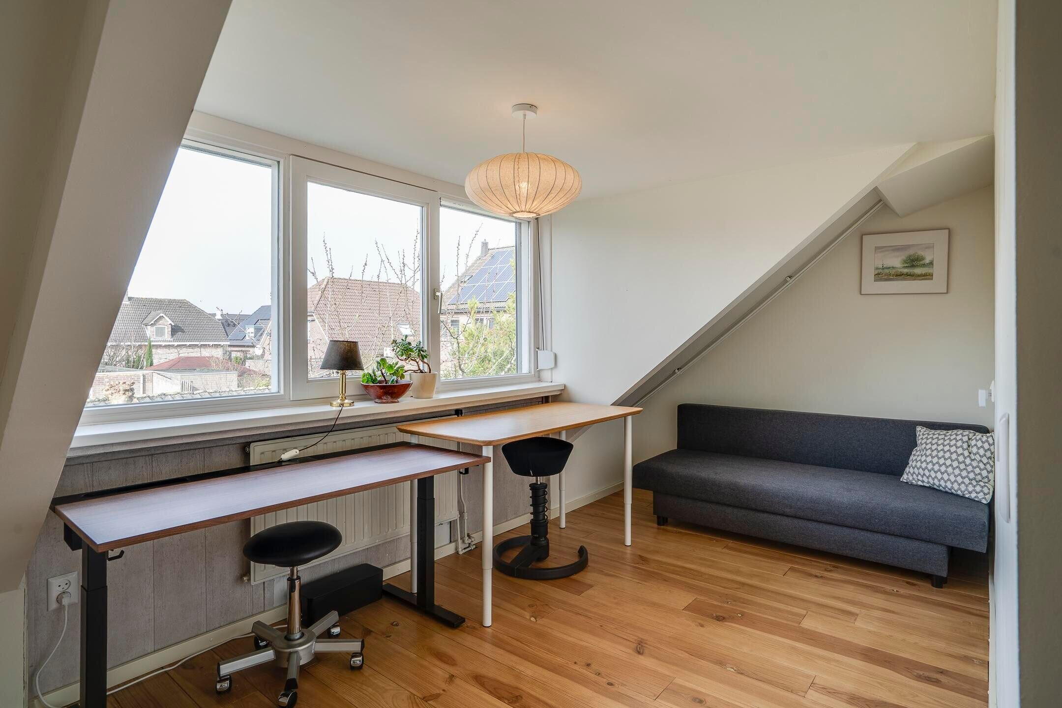 Op de eerste verdieping bevinden zich drie slaapkamers en een badkamer voorzien van een bad, wastafel en toilet. De tweede verdieping is ingericht met een vierde slaapkamer en aanvullende bergruimte. Deze extra kamer kan tevens dienst doen als werk- of hobbyruimte.